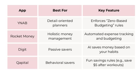 Tip: Only use apps with FDIC-insured savings accounts (e.g., Chime, Ally).